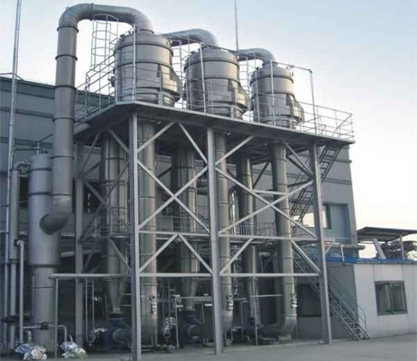 三效蒸發器主要由相互串聯的蒸發器、冷凝器、鹽分離器以及復制設備等組成三組蒸發器,以串聯的形式組成一整套的三效蒸發系統。