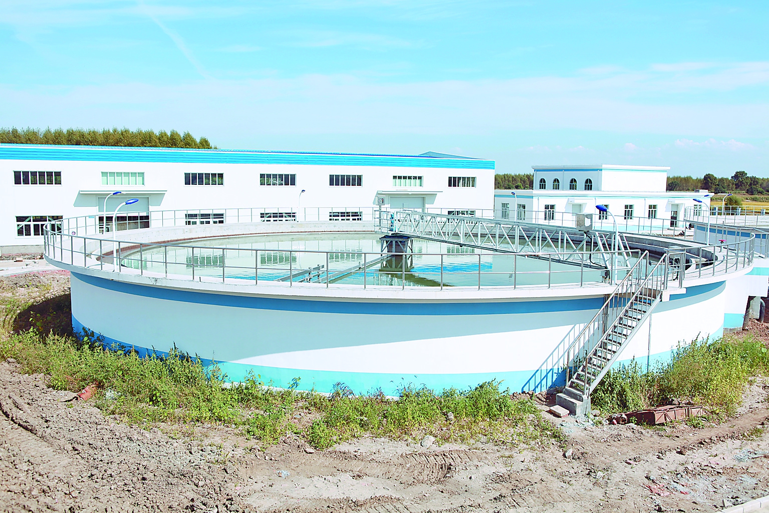 二沉池一般設(shè)置在曝氣池之后、深度處理或排放之前,其作用是泥水分離使經(jīng)過生物處理的混合液澄清,同時對混合液中的污泥進(jìn)行濃縮。污水經(jīng)過生物處理后,必須進(jìn)入二沉池進(jìn)行泥水分離,澄清后的達(dá)標(biāo)處理水才能排放,同時還要為生物處理設(shè)施提供經(jīng)過濃縮的回流污泥或一定量的處理水。